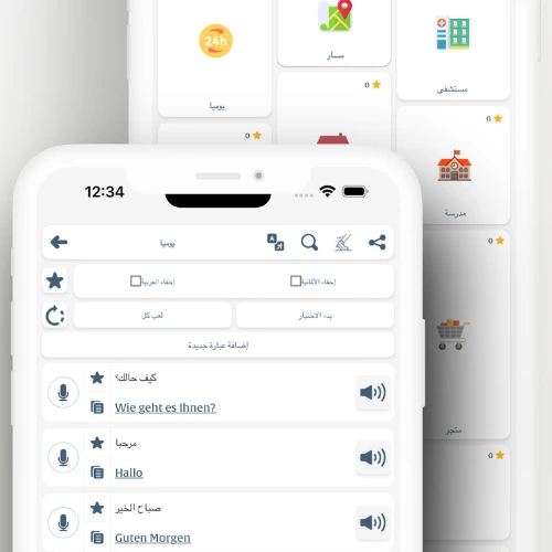 ربط الكلمات بالصور اختيار الترجمة الصحيحة إملاء واستماع ترجمة من وإلى الألمانية
