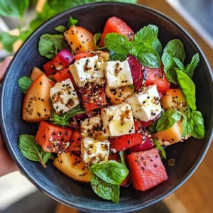 5 Easy Summer Dinners Stay cool and hydrated with this ultra-refreshing Watermelon Feta Mint Salad. Sweet, juicy watermelon pairs beautifully with salty feta and fresh mint in this no-cook summer side dish. It’s bright, crisp, and ready in minutes — a beautiful addition to any warm-weather meal.