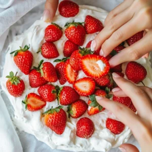 This no-bake cake is also incredibly customizable, making it an all-season favorite. Whether you stick with strawberries or mix in other fruits like blueberries or peaches, the base remains creamy, dreamy, and always delicious.