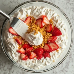 Repeat the layering process — graham crackers, whipped cream, strawberries — until you’ve completed 3 full layers. End with a final layer of whipped cream on top.